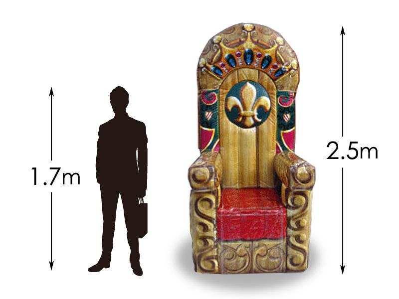 王様やお妃様が座るような立派な椅子がバルーンチェアとなりました。パーティーの主役が座る椅子に最適です。結婚式の二次会やパーティーはもちろんのこと、クイズ大会での優勝者や勝ち抜き戦の勝者が座る椅子としてもお使いいただけます。王様用、お妃様用のどちらも空気で膨らませてできあがります。豪華な見た目ですが、簡単に完成するのが嬉しいですね。
