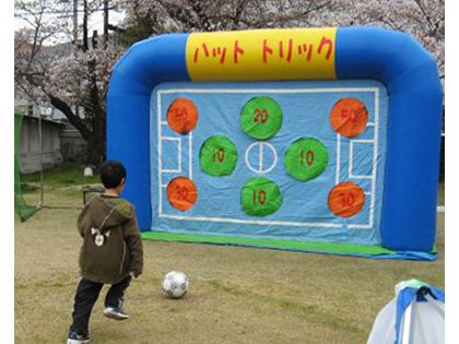 エアー式サッカーチャレンジ レンタルご紹介ページです。東京、大阪をはじめ全国各地に発送しております。