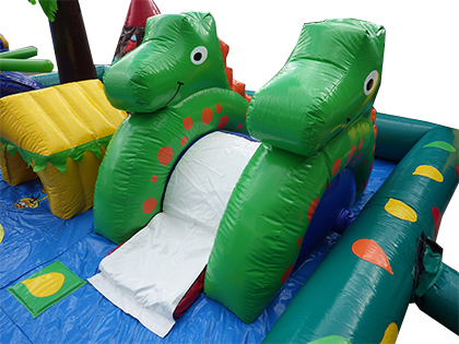 小さなお子様から安心して遊んでいただける、ふわふわガーデンスペースのご紹介です!恐竜の小さなスライダー、プロペラが付いたトンネル、ボールプールにもなるスペースなど、色々なアトラクションがギュッと詰まったエア遊具です!たくさんのエア遊具がありますが、1歳や2歳など、歩き始めたくらいのお子様でも十分楽しんでいただける商品です。キッズスペースへの設置もおススメです!