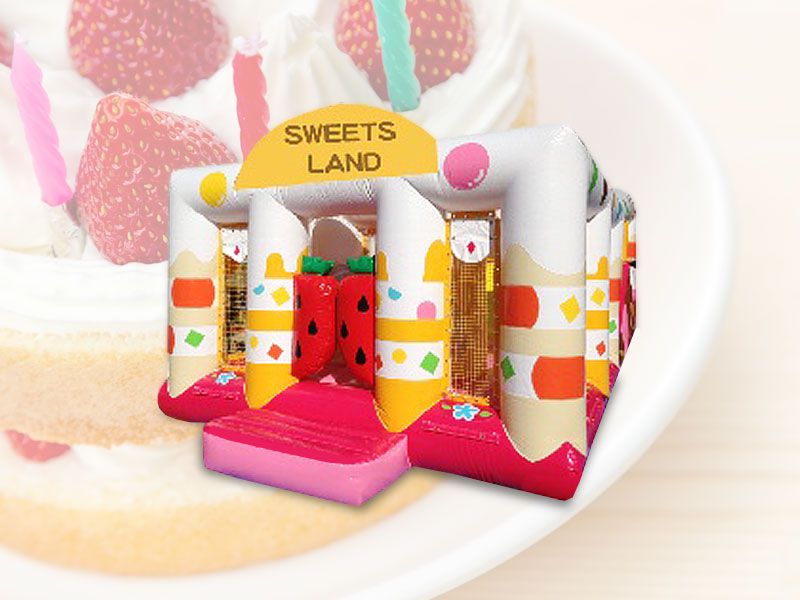 ケーキ好きにはたまらない、巨大ケーキのエア遊具の登場です!入り口の大きなイチゴの間を抜けると、秘密のスイーツパラダイスのような空間が広がります!ジャンプして遊ぶのも良し、中にあるすべり台を滑って遊ぶも良し。バレンタインやクリスマス、スイーツイベントや施設のアニバーサリーイベントなどの会場で設置すれば、楽しく盛り上がれるのではないでしょうか?ファミリーイベントなどにも、ぜひご活用ください!