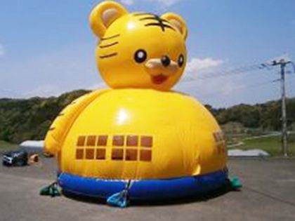 にっこりとバンザイをした愛嬌たっぷりなかわいいトラバウンスのご紹介です!幅が6m、高さが7mと存在感があり、広いイベント会場でもお子さんがすぐに見つけて集まってきてくれます。また、中に入ると小さいトラさんがニコニコと笑顔で出迎えてくれ、一緒に飛び跳ねたり抱きついたりと子供心をくすぐります。ファミリーイベントや縁日などお子さんがたくさん集まる会場で行列ができること間違いなしです!移動動物園などの動物関連のイベントにもお勧めです。