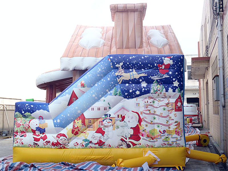 冬の一大イベントであるクリスマス!サンタさんのお家をイメージしたようなサンタハウスのご紹介です!雪が積もった温かみのある木の家の前には可愛く飾られたツリーと楽しそうな顔をした雪だるまとトナカイが出迎えてくれます。また、側面には忙しくプレゼントを運ぶサンタさんが鮮やかに描かれた滑り台も付いておりますので、お子様にはたまりません。置いていただくだけで、クリスマスの雰囲気にガラリと変えてくれますよ!