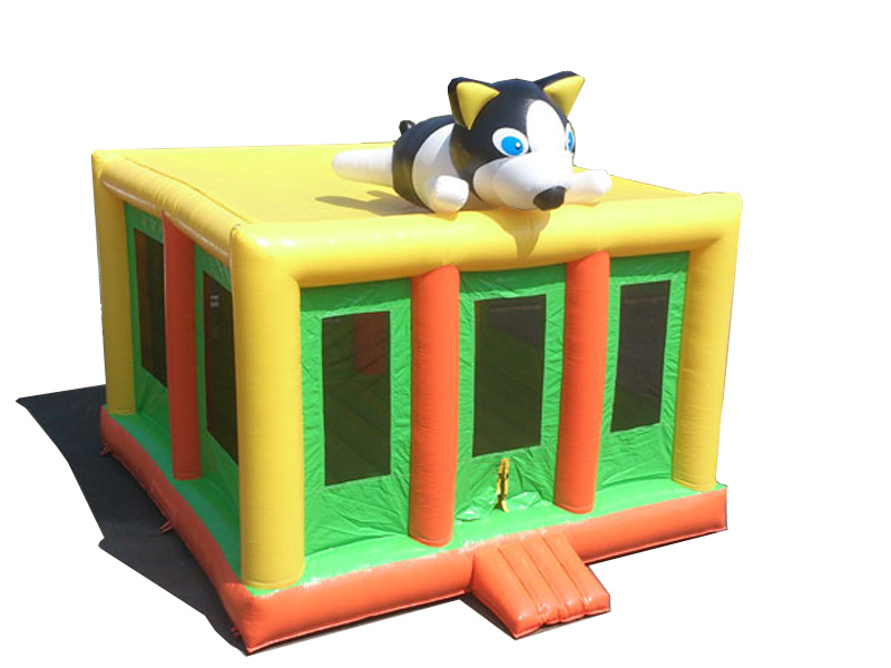 天井に可愛らしいフレンチブルドッグがひょっこりと乗った、エアドッグハウスのご紹介です!6mサイズのルーフトップ型で、最大で13人同時に遊んでいただけます。大きさもさることながら、存在感抜群のフレンチブルドッグがアイキャッチ効果を発揮し、来場されたお子さん、ご家族の目に留まります。中の様子を覗ける大きな窓もありますので、親御さんも安心して見守っていただけますね。
