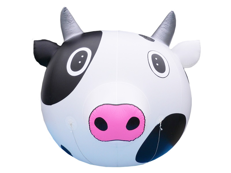 大きくてま〜るいウシさん!「ウシさんエアポップ」のご利用はいかがでしょうか。高さ約2mもあるインパクト抜群のこちらは、酪農フェアーや牛肉の販売、牧場でのイベントにぴったり!さらに会場を盛り上げてくれるでしょう。キョトンとした表情がなんとも愛らしいエアバルーンです!ご入用の際は、お気軽にご相談ください。