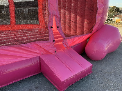 くるっと巻いた可愛いしっぽのお尻が自慢です!「ぶたさんバウンス」のご紹介です!可愛らしいデザインのこちらの商品は、両側面がメッシュになっており、とても風通しがよく、外で見守る保護者の方も、中の様子がしっかりと確認していただけます。ピンクの目立つカラーもアイキャッチにぴったりですね。集客イベントやショップイベントのご利用にいかがでしょうか!