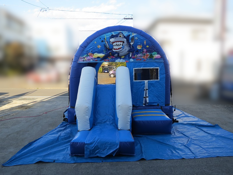 海のギャングであるサメが狙ってる!?海や海の中に住むお魚に関するイベントに「オーシャンプレイランド」はいかがでしょうか!こちらの商品は、中はフラットになっているので、思う存分ジャンプして遊んでいただけます。中から外に繋がるスライダーも付いており、跳ねて滑ってと夢中で遊んでくれるでしょう!お問い合わせをお待ちしております。