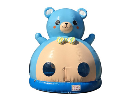 ちびっ子たちのハートをわしづかみ!キユートなクマのキャラクタードーム、「みずいろのくまさんドーム」のご紹介です!見ていただければ、説明要らずの可愛さのこちらの商品。なんとも言えない愛らしいそのキャラクターが、お子さんのみならず、大人の方もキュンときちゃうかもしれません!中でお子様が楽しく遊ぶ様子は、丸い小窓から見ていただけるので、保護者の方も安心です。同キャラクターシリーズのみずいろくまさんバウンスやキッズ向け大型輪投げもございますので、併せてご覧になってください!
