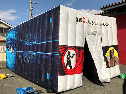 スパイ気分で駆け抜けろ!「レーザー光線迷路」が新たに仲間入りしました!テレビやアニメでみかける「レーザー」を使ったシーンを体験できるこちらのエアー商品。張り巡らされた赤いレーザーに当たらないように、どういったルートをどういった態勢で進んでいくのか考える、頭も体も使うゲームです。少しでもレーザーに当たってしまうと音が鳴り、失敗を知らせます。さぁ、ミッション成功なるか!?ご入用の際は、お気軽にお問い合わせください!