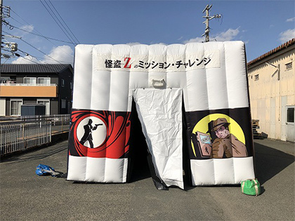 - 設営場所の安全を確認し、ウェイトや杭などで遊具を固定してください。(必要備品等は、ある程度ご用意致します。)