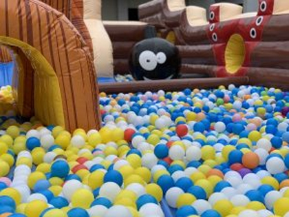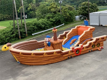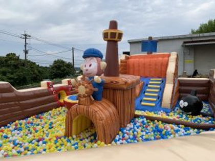 可愛いおサルの船長さんが目印!「船型ボールプール」のご紹介です!海やウォーターイベント、夏休みのイベントにおすすめしたこちらの商品。スライダーで滑り下りた先には、広いボールプールが待っています!大海原を進むかっこいい海賊船のようですが、可愛い船長と船の先端に付いたほんわかキャラがなんとも言えません!ご入用の際は、お気軽にお問い合わせください。