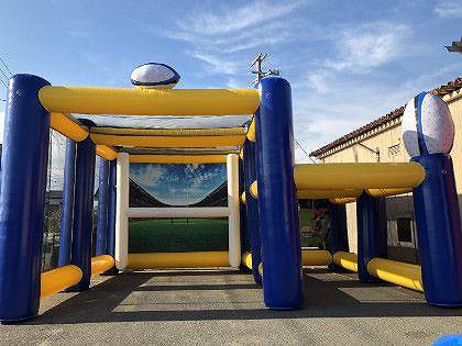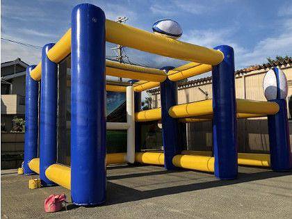 - 設営場所の安全を確認し、ウェイトや杭などで遊具を固定してください。(必要備品等は、ある程度ご用意致します。)