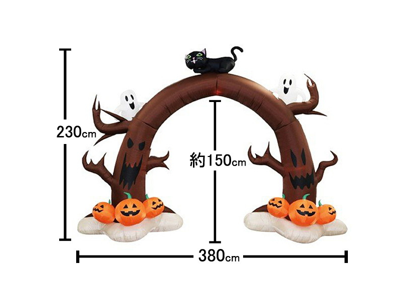 怪しげな木のお化けがアーチとなった「ハロウィンゴーストアーチ」のご紹介です!足元にはカボチャのお化け、木の上にはゴーストや黒猫が飾られたこちらのアーチ。高さは内寸が150cmなので、大人の方ですと少しくぐるかたちになります。ハロウィンイベントを開催する際には、是非とも会場の入り口から雰囲気作りを!お問い合わせをお待ちしております。