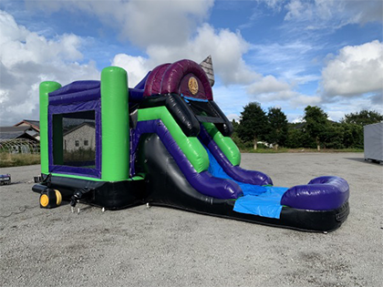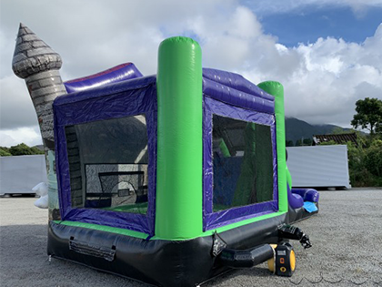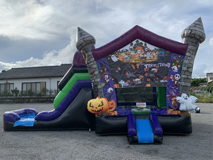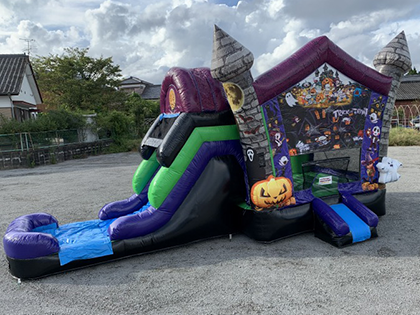 ハロウィンイベントにぴったりなエア遊具!「ホラーハウスコンボ」のご紹介です。ゴースト達のお城をイメージしたこちらのエア遊具。ぴょんぴょんと飛び跳ねて遊べるスペースに加え、スライダーもあるコンボ型になります。最大6人まで同時に遊んでいただけます。イベントの目玉に是非いかがでしょうか!お問い合わせをお待ちしております。