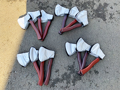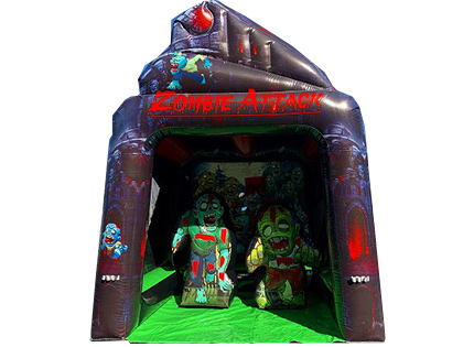 目の前に押し寄せるゾンビを武器を使って撃退!「ゾンビ撃退体験」のご紹介です。弓矢や斧、火の玉をゾンビに投げて退治するこちらのゲーム。目の前にいるゾンビだけではなく、後ろにウヨウヨといるゾンビ達も退治してください!ゾンビに当てた数により景品を用意したり、制限時間を設けてランキングしたりとプラスαを付け加えると、より盛り上がります。お友達やご兄弟、親子で協力して楽しめるオススメ商品です!なお、武器は柔らかい素材ですのでどうぞご安心ください。