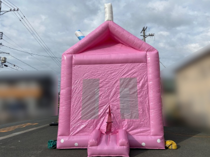 牛乳パック型のエアバウンス!「牛乳パック型バウンス」のご紹介です。ミルキーピンクの色目がとっても可愛いこちらの商品。ストローやOPENの矢印まで再現しており、まさに牛乳パックが巨大化したデザインとなっております。中は全面フラットの床面で思い切り跳ねて遊べ、同時に10人遊んでいただけるので回転率もいいですよ。背が高いので遠目からでもよく目立ち、アイキャッチ効果も抜群!ご入用の際は、弊社までお気軽にお問合せ下さい。