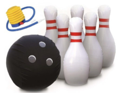 エアーポンプで膨らませる巨大エアーボウリングのご紹介です。高さが約71pのピンが6本がついており、直径約63.5mcのボール転がしてピンをなぎ倒します。無毒で低アレルギー性の素材で作られており、安心してご使用いただけます。また、柔らかい素材で出来ており空気で膨らませて遊ぶので、安全に遊んでいただけます。屋外でも使用可能なのでイベントやパーティーで盛り上がること間違いなしです!!子どもだけでなく、大人の方も一緒に楽しく遊んでいただけます!!ホームパーティーにいかがでしょうか。