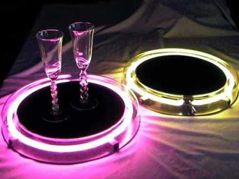 飲み物などを運ぶトレイの縁がネオンで輝く、光るトレイです!光の色は「赤、青、緑、ピンク、ゴールド、紫、白、水色」の8種類をご用意!イベントの雰囲気に合わせてご利用いただけます!暗くした屋内のイベント会場や、夜間の屋外イベントなど、暗い場所で使えばネオンの怪しい光が良い感じに目立ちます!ネオンの光りでイベントに参加している人の気分を盛り上げたり、会場の雰囲気を盛り上げてください!