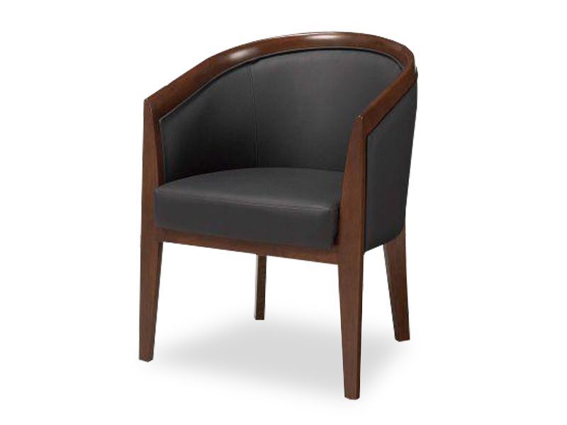 シックで高級感あふれるホテルチェアのご紹介です。座面クッション、背面ともにレザー張りになっており、座り心地抜群!また、脚はダークブラウンのブナ材を使っていて、とてもシンプルで落ち着いた雰囲気のチェアです。応接室や住宅展示場の空間作りに、結婚パーティーや二次会会場の待合室にと様々な場面に対応できます。高級感を生かして特別なお客様をお迎えする時にご使用いただくのもいいですね。
