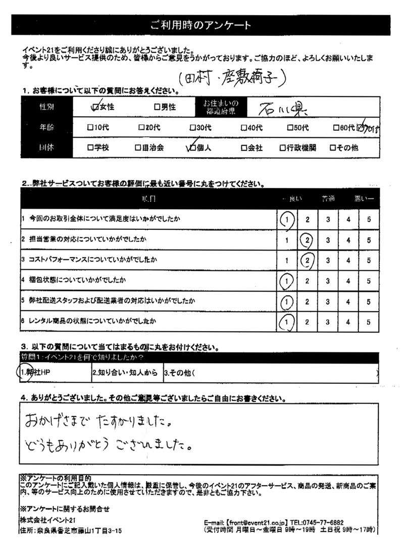 この度は、ご利用ありがとうございました。お体には、お気をつけくださいませ。またご機会がありましたらよろしくお願いします。