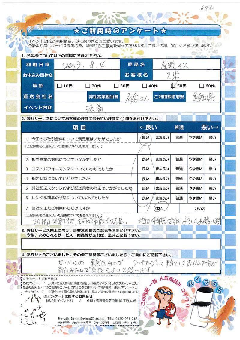 2013年8月にご利用頂いた愛知県のお客様より