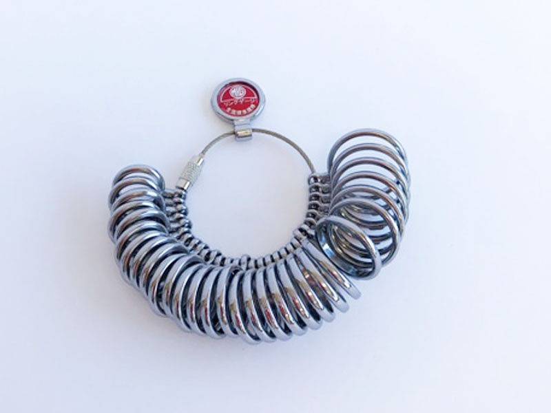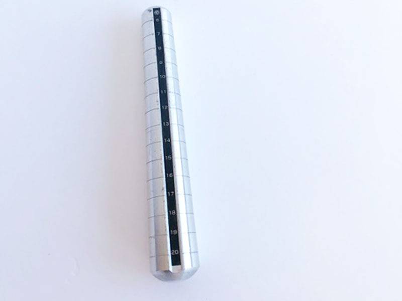 指輪を購入する際、自分の指のサイズが分からなかったり、指に合わないサイズを買ってしまったといった方に便利な、リングサイズ棒&リングゲージのご紹介です。リングサイズ棒は、自分が現在付けている指輪を通し、指輪が止まった位置の数字でサイズが分かるといった仕組みです。また、指輪に変形箇所が無いかを調べることもできます。これに対しリングゲージは、自分の指に直接リングを次々と装着していき、そこからサイズを特定することができます。指のサイズはむくみ等の理由で変化することもある為、定期的に測定するのがベストです。今後指輪の購入をお考えの方は是非ご利用下さい。