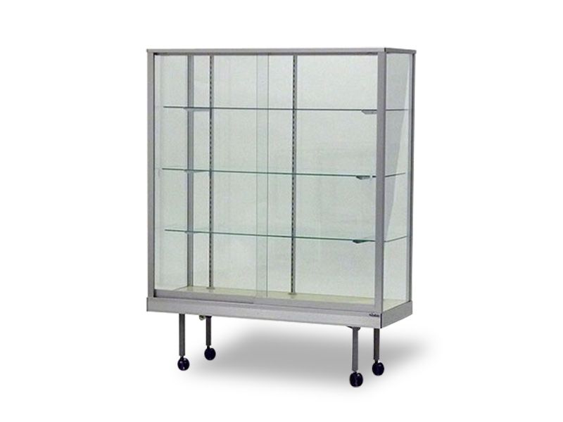 無駄なくスッキリと、しっかり展示物の存在だけをアピールしてくれる四脚縦長ガラスケースのご紹介です。少し大きな展示ケースにはなりますが、3段に分けて展示することができ収納力もばっちりです。また、脚にはキャスターが付いていますので移動もしやすく、ディスプレイの変更も簡単にできます。少し高級な商品や展示物の保護ケースとしてもお勧めです。
