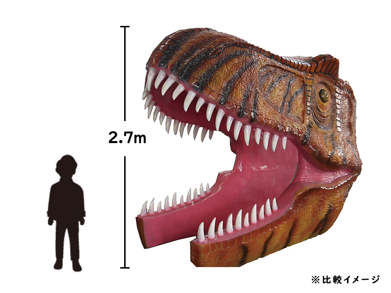インパクト抜群!今にも食べられちゃいそうな迫力満点の入場ゲート「ティラノサウルスゲート」のご紹介です。牙をむき出しにした、大きなティラノサウルス。遠目からでもよく目立つので集客効果も期待できます。入場ゲートとしては勿論ですが、写真映えもバッチリなので撮影スポットとしても!恐竜展や恐竜関係のイベント、お子さんが多く集まるイベントに是非ご利用ください!