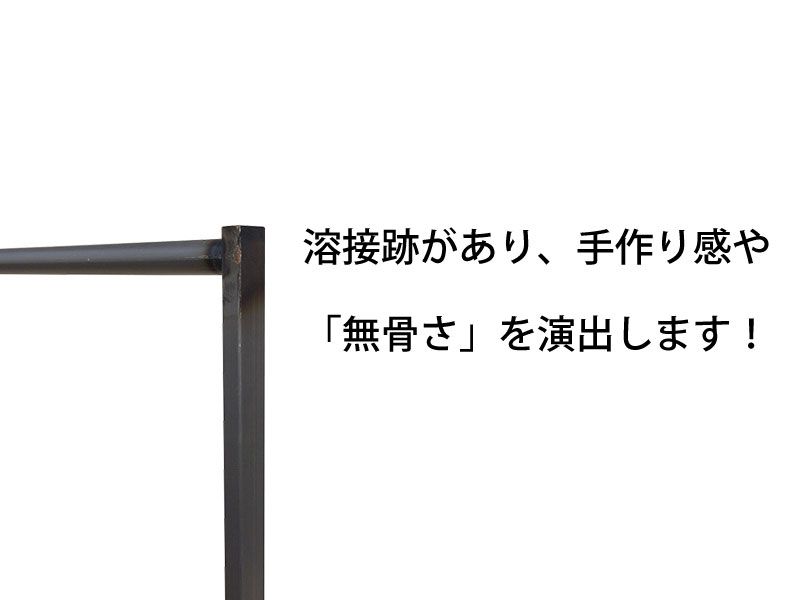 服飾関連の展示会やイベントで、洋服を素敵に展示してみませんか。こちらのスチールハンガーラックは溶接しただけの無骨さがあり、飾り気のないその雰囲気が展示物をさらに引き立てます。落ち着いた色目でどっしりとしたイメージですが、足元はキャスターが付いていますので移動はスムーズにできます。いつも使っているようなありきたりなハンガーラックではなくオシャレに演出したいという方にお勧めです!