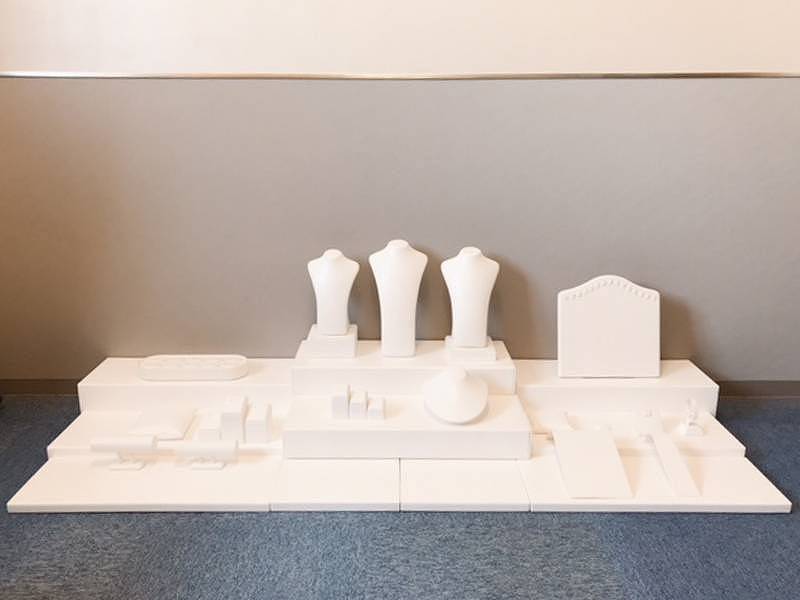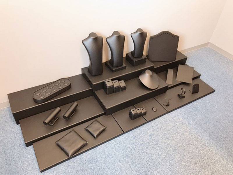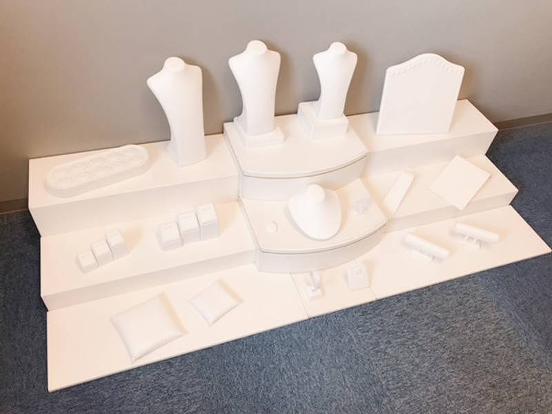 卓上や展示台の上で使用する宝飾やアクセサリーの展示用ステージをご紹介します!幅と奥行きがあるのでたくさんのアクセサリーを展示することができ、段になっているのでお客様にも見えやすいです。 オープンセットディスプレイに使われている台なので一式でご使用になるお客様はセットでのご注文をオススメします。組み合わせ次第で様々な見せ方ができます!部品構成も豊富なので、こだわったカスタマイズが可能です!