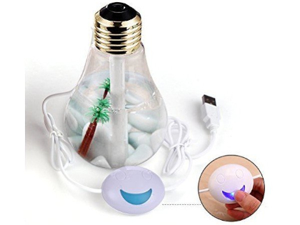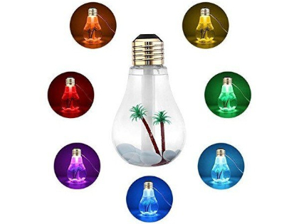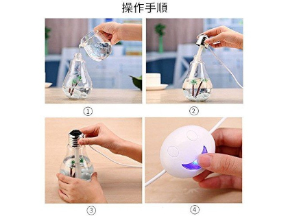 いっけんはただの電球!オシャレな卓上加湿器、「電球加湿器」のご紹介です!可愛い電球型のデザインの加湿器なので、インテリアとしてもオススメ!音波振動でミクロの霧を吹き出し、連続で6時間稼働します。透明なので中身の水の量が確認しやすいのもポイントです。USB充電ができますので、オフィスや車の中でも利用可能。また、LEDライトで7色に光らせることができ、癒し効果も抜群です!ご入用の際はお気軽にお問い合わせください。