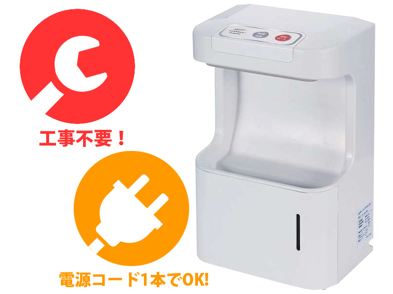 - A.運転スイッチを『入』にしておけば、手を差し込めば自動で風がでます。また、約60秒間連続して使用すると、いたずら防止装置が働き自動でストップします。再度風を出したいときは、一度手を抜いてから再度差し込んでください。