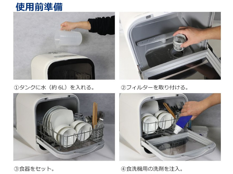 今や毎日の家事の必需品!「乾燥機能付き食洗機」のご利用はいかがでしょうか!こちらの商品の特徴は、なんといってもタンクからの供給で洗浄できるということ。取付工事不要で、使いたい場所に設置したらコンセントを差し込むだけで使用可能です。食洗器の中では小型になりますので、手狭なキッチンにもオススメ!見た目もかわいらしく、中でしっかり洗浄されている様子も覗けます。ファミリーパーティーや、冬場の手の乾燥が気になるシーズンにいかがでしょうか!