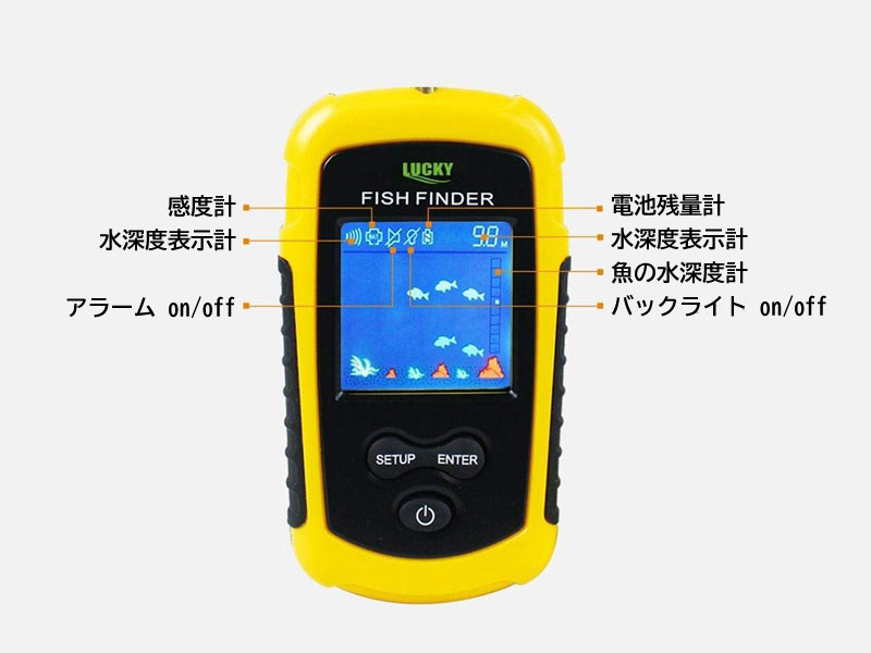 海や川、湖や釣り堀などの漁場に!「小型ソナー」のご紹介です。釣りの醍醐味といえば、魚との駆け引きの後の釣り上げた達成感!ですが、魚の居ない所で竿を垂らしてもただ時間が過ぎるだけで終わってしまいます。こちら商品は、センサーが超音波を使い水深、およその魚の位置、岩などを検出して表示します。せっかく釣りにきたのに収穫ゼロにならないよう、是非一度お試しください!