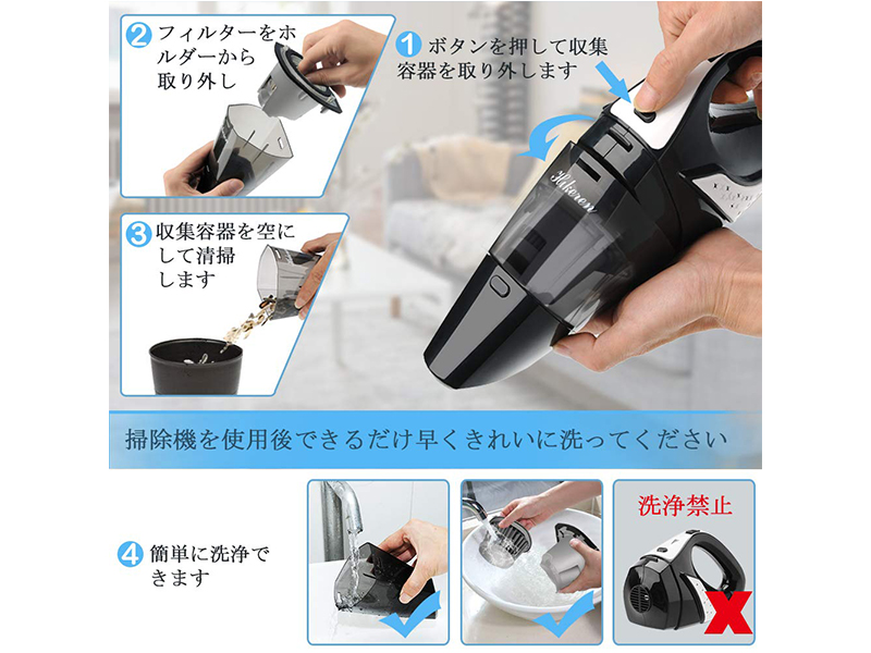 - フィルターを湿らせた状態でご使用されますと本来の吸引力が発揮できません。フィルターは乾燥させた状態でご使用ください。