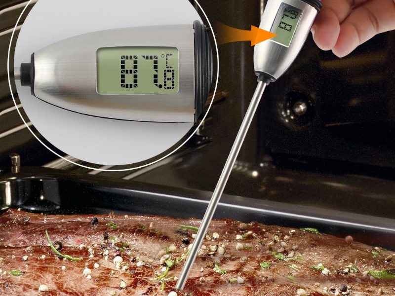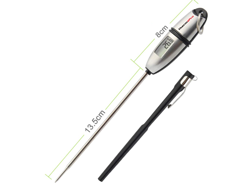 調理におけるベストな温度を簡単に計測!「クッキング温度計」のご紹介です。こちらの商品は、お湯や油料理、飲み物の微妙な温度管理に役立ちます。手の込んだお料理になると「〇度で〇十分湯煎」など、見た目や感覚では難しいこともしばしば。また、揚げ物に関しては油に投入する時の温度はとても大事で、失敗すると中身が飛び出してしまったり、表面だけ真っ黒に焦げてしまったりと、せっかくのお料理が台無しになってしまいます。こちらは、先端にセンサーが付いたプローブを差し込むと、僅か4〜6秒で瞬間計測。デジタル表示なので、計測された温度も一目瞭然です。お赤ちゃんの飲むミルクの計測にもオススメです!