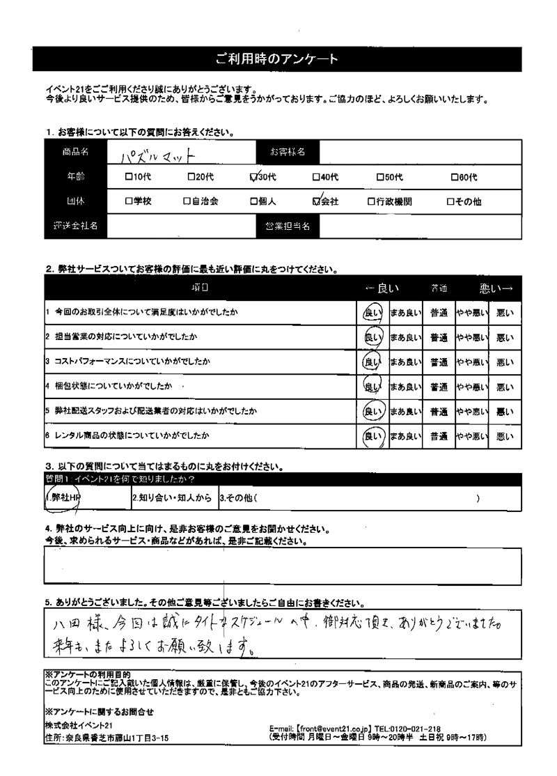 ご利用いただき、ありがとうございました!お客様からアンケートをいただいたのは今回が初めてでしたのでとても嬉しく思います。