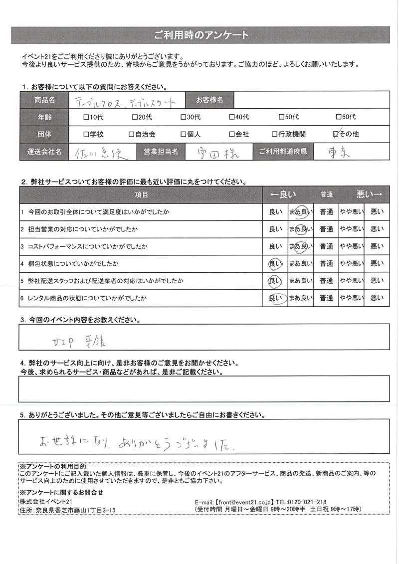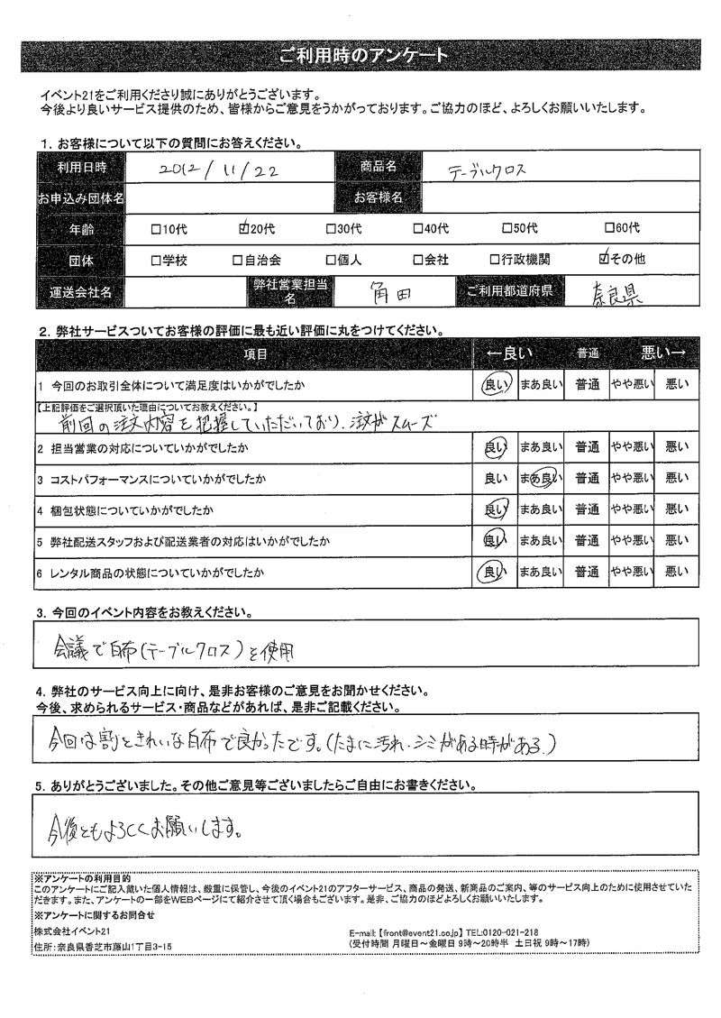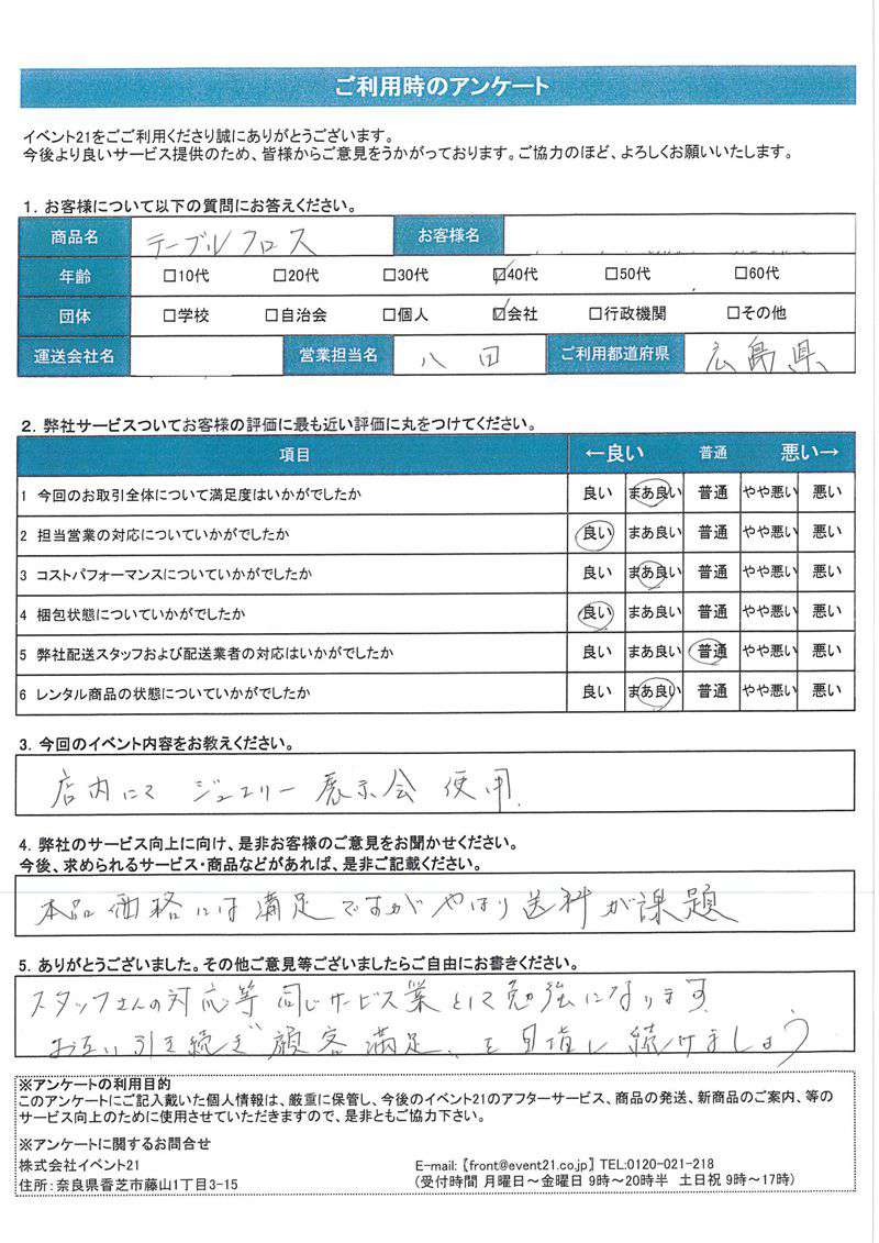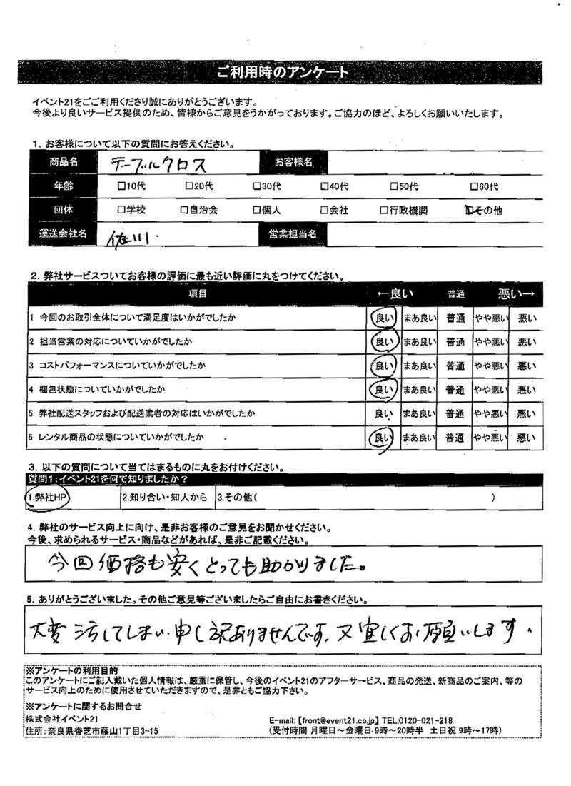 ご利用いただきましたテーブルクロスの調子はいかがでしたでしょうか。