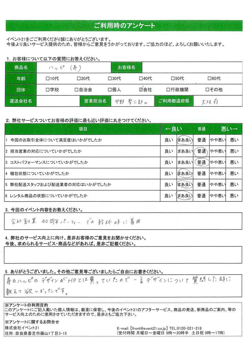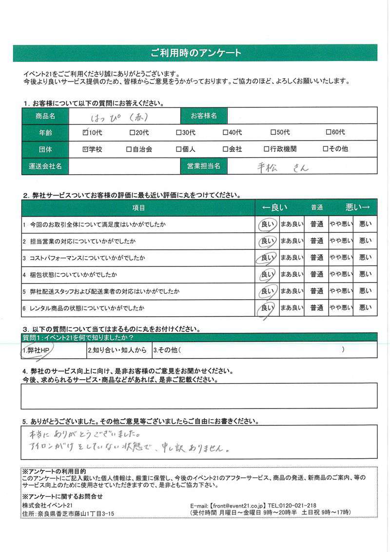 この度は、弊社のハッピをご利用いただきまして、誠にありがとうございました!