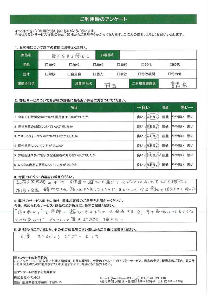 2012年11月にご担当させていただきました、その他・青森県のお客様より