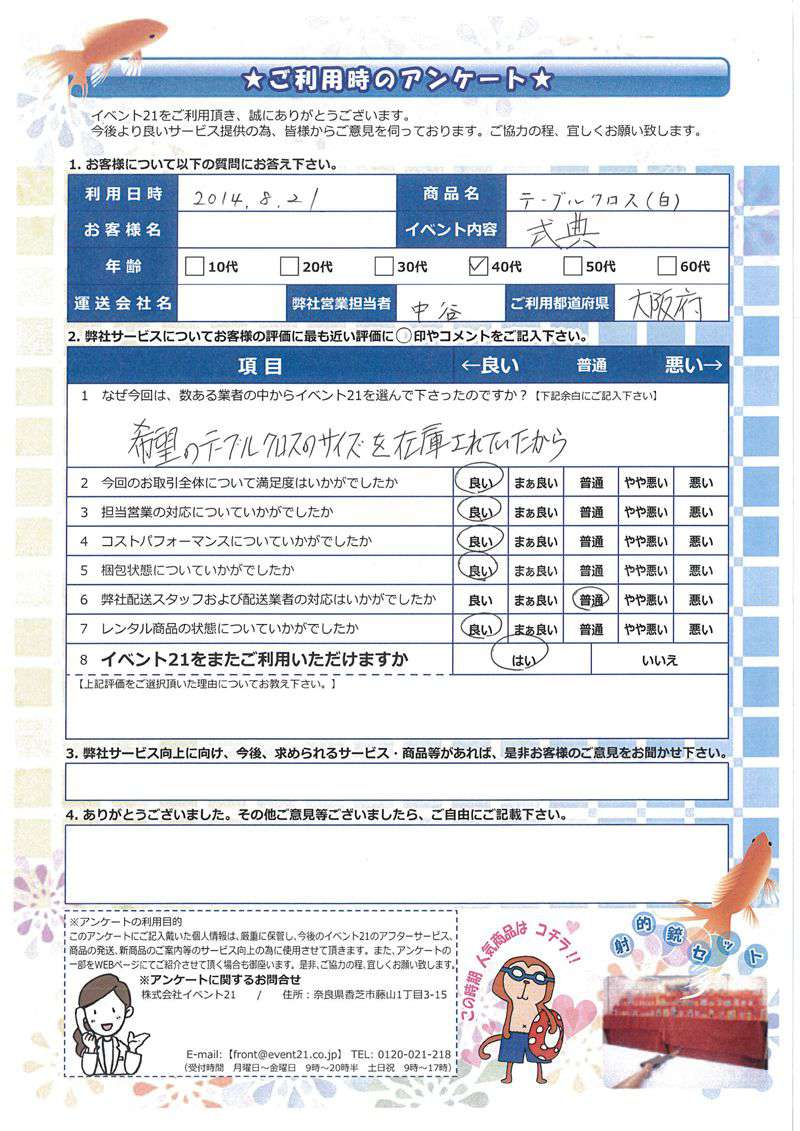 2014年8月にご利用いただいた20代、大阪府のお客様より。