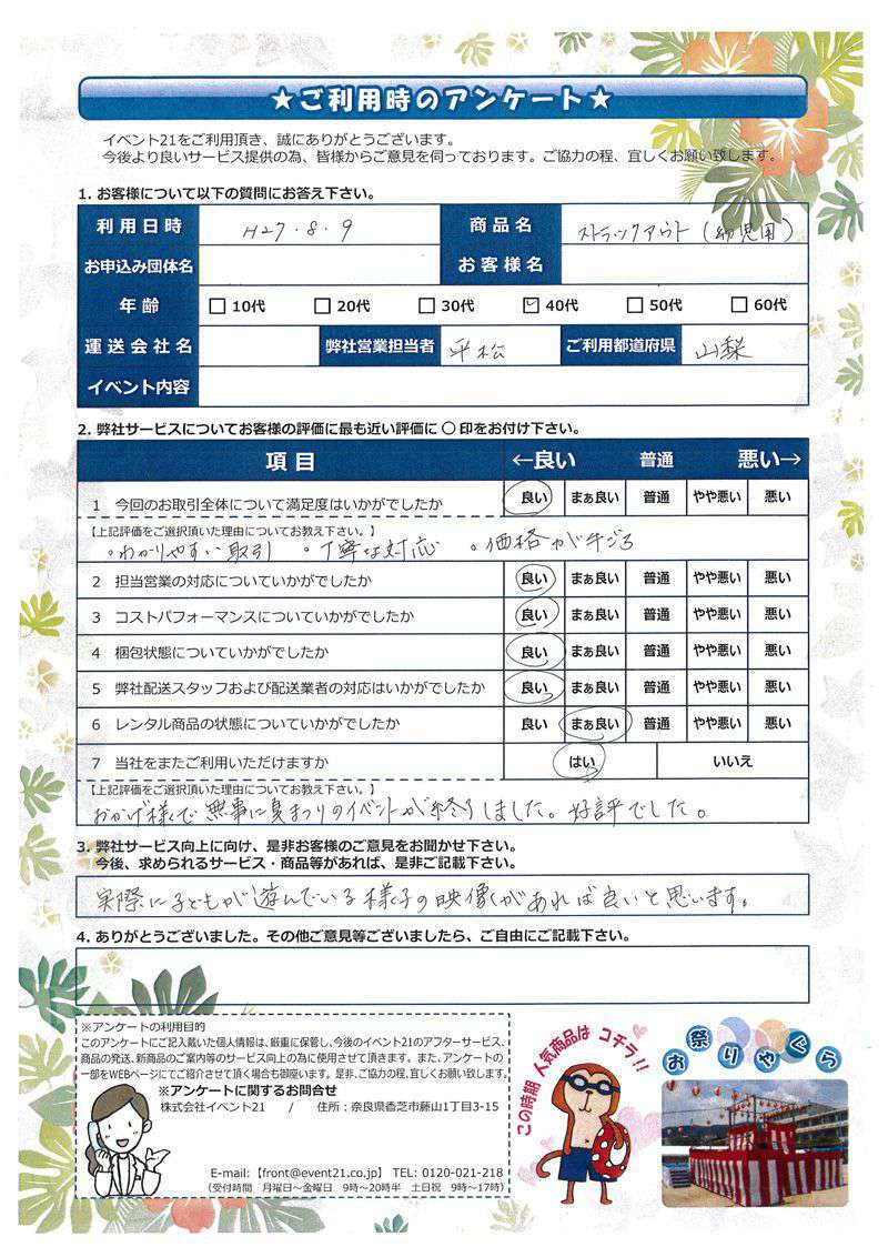 2015年8月にご利用いただいた50代、山梨県のお客様より。