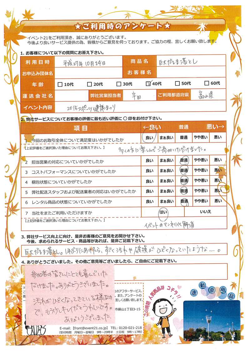 とても賑やかなイベントのお手伝いさせていただきまして、こちらこそありがとうございました。体操マット以外の商品も豊富にご用意しておりますので、お気軽にご相談ください。