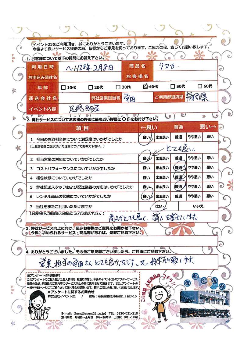 この度は弊社の商品をご利用ありがとうございました!今後もスムーズにレンタルサービスをご利用いただけるよう心がけますので、またの機会がありましたら、是非宜しくお願い致します!