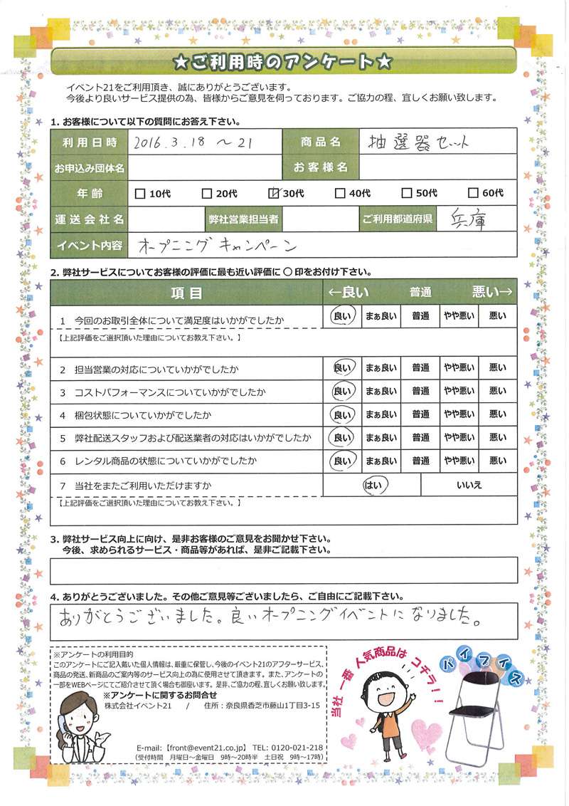 2016年3月にご利用いただいた30代、兵庫県のお客様より。
