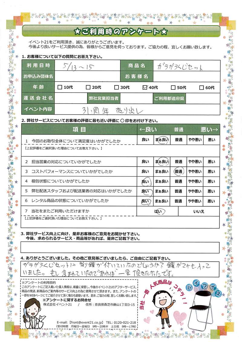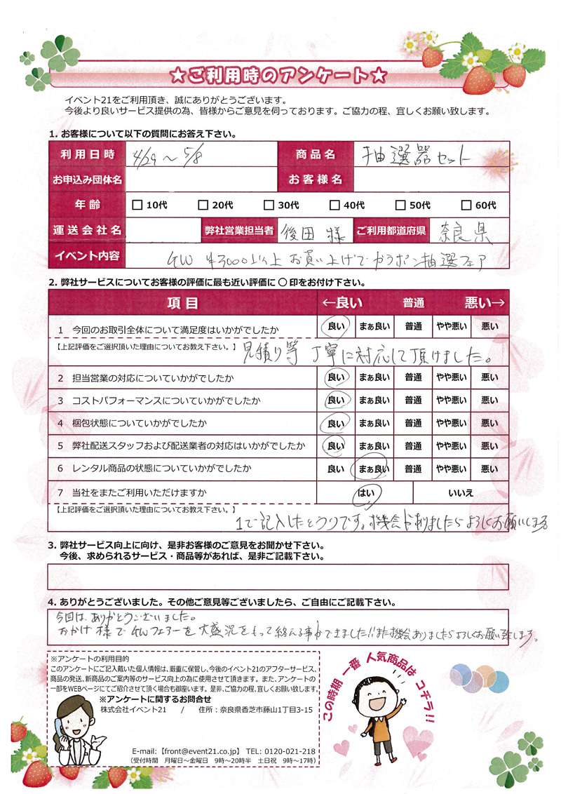 この度は弊社商品をご利用いただきありがとうございます。 イベントの成功に少しでもお役に立てたようで光栄に思います。 また機会がございましたら弊社商品をご利用くださいませ。