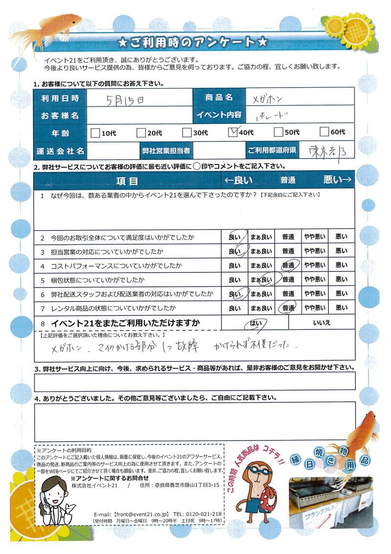 2016年5月にご利用いただいた40代、東京都のお客様より。