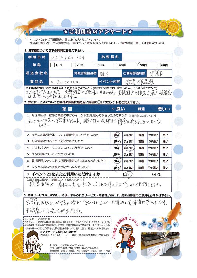 2016年6月にご利用いただいた50代、京都府のお客様より。