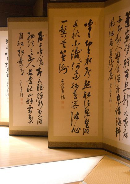 書作展では、衝立のような大きな物に書を書いて展示することもあります。