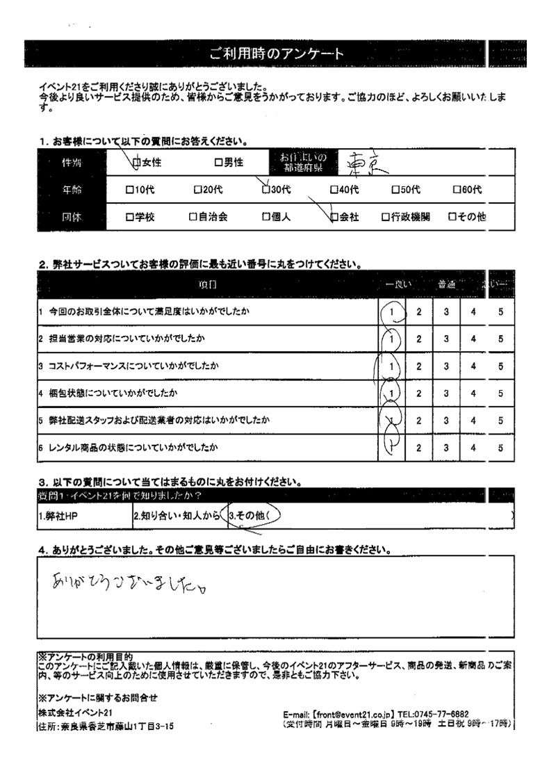 2016年3月にご利用いただいた20代、東京都のお客様より。