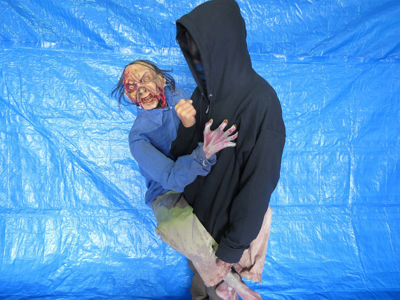 見てください、この気持ち悪さ!本気でビビる「ゾンビパペット」のご紹介です。海外映画のホラーの定番のひとつと言えばこちらのゾンビですよね。死んだはずの人間が腐敗しながらも動き、人々を襲うという何とも恐ろしい生き物。こちらのパペットは、見た目のリアルなグロさに子どもさんはもちろん、大人の方までビックリしてしまうかもしれません。襲われているように見える黒いパーカーの人が、実は中でゾンビを操っています。お盆やハロウィン、お化け屋敷などのイベントの際に是非いかがでしょうか!